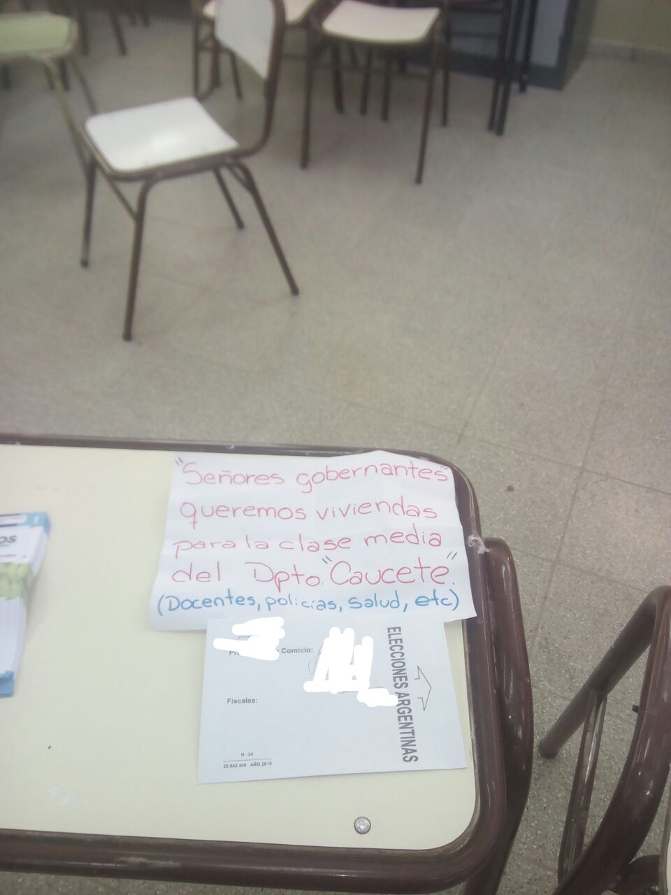 Un elector, aparentemente de Caucete, envió una imagen de un cartel que introdujo en el sobre, en vez del voto.