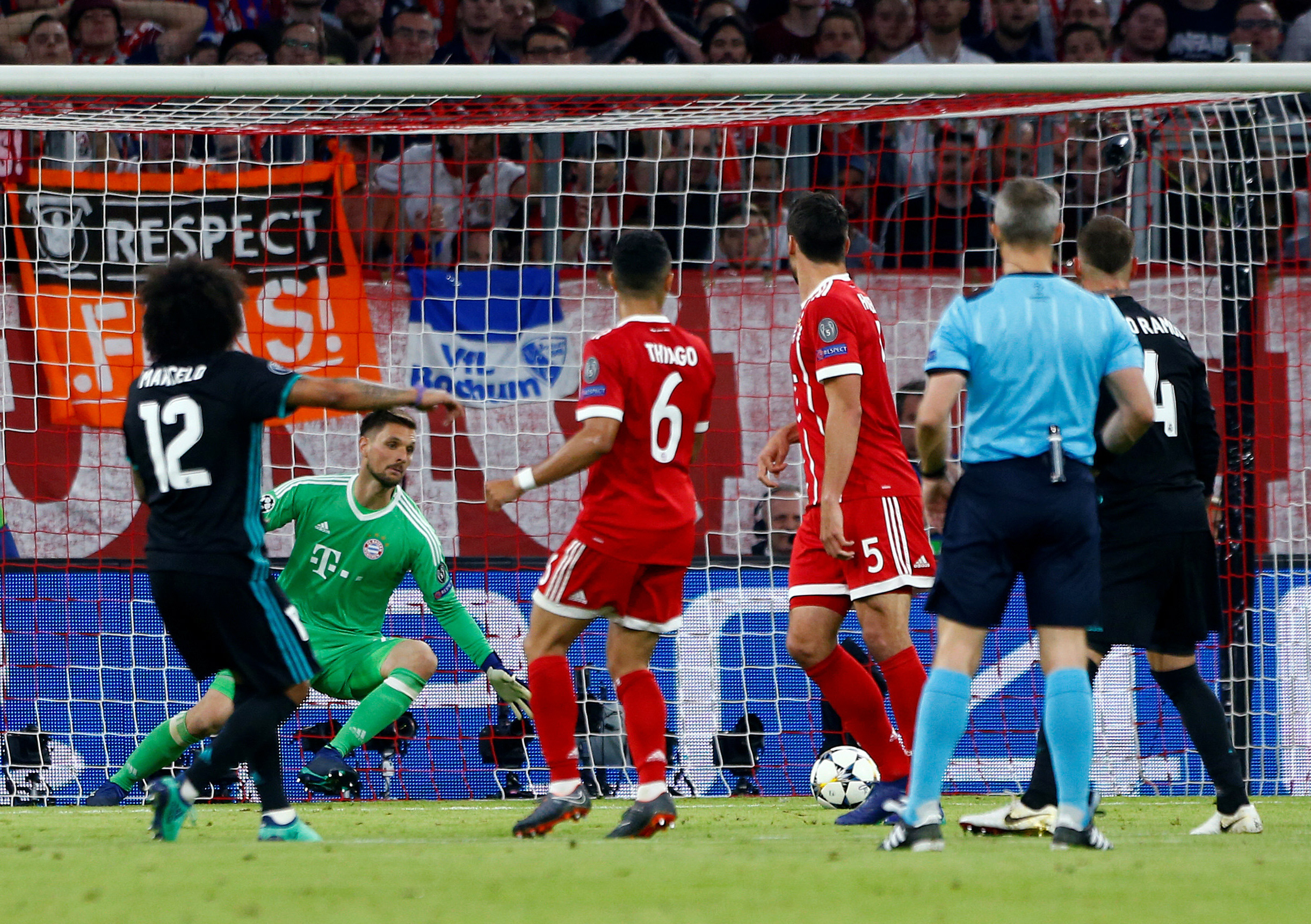 Empata. Marcelo, defensor del Real Madrid, ya remató con su zurda para establecer la paridad transitoria ante el Bayern Munich.