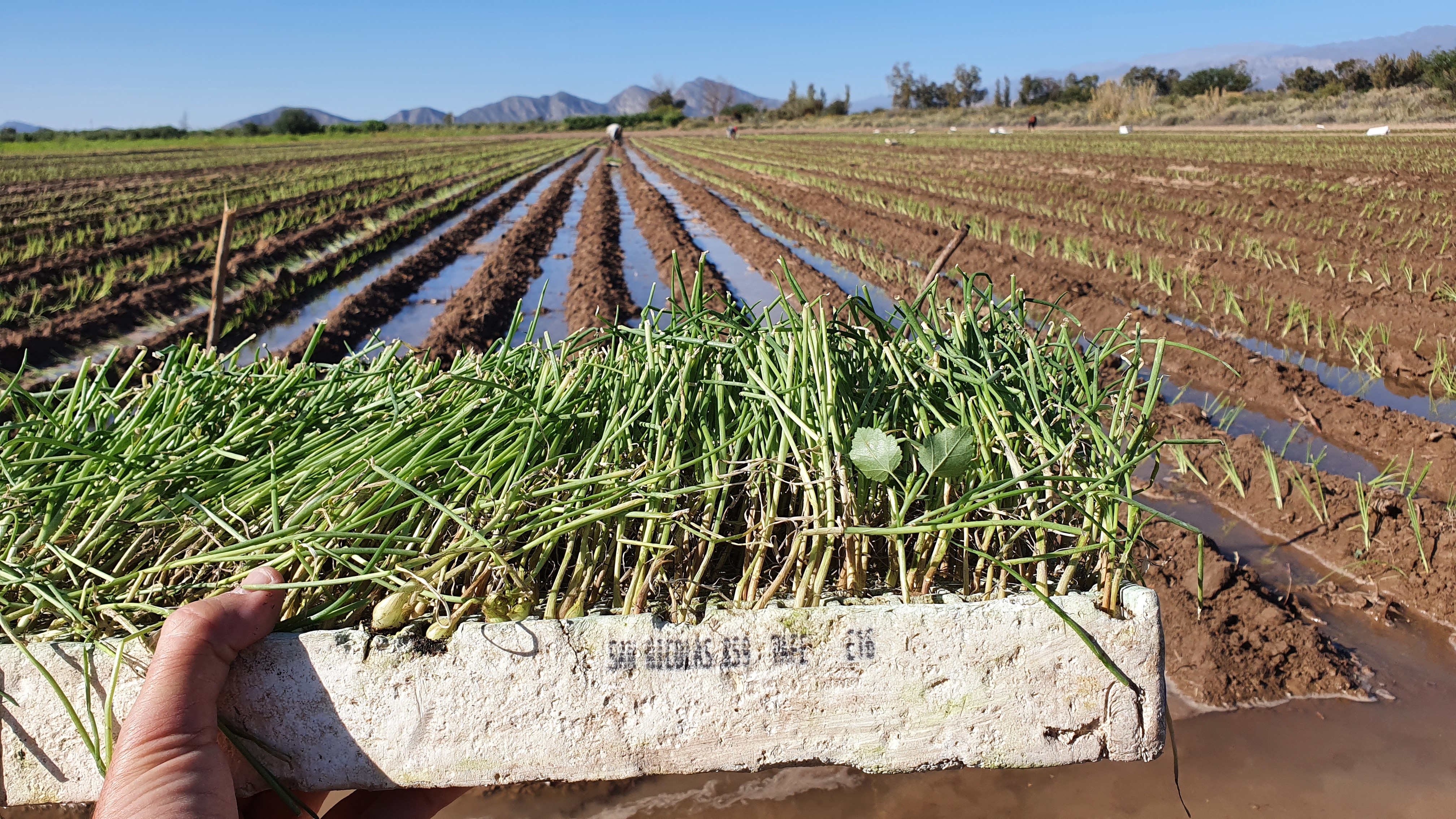 Suplemento Verde esta semana estuvo en una finca, en un transplante de almácigos con este segundo método, que se hace con agua en el surco, por las extremas temperaturas, colocando unas 20 plantas por metro, a dos caras del surco, a 90 centímetros de separación entre líneas, con fertilización con fósforo localizado previamente.
