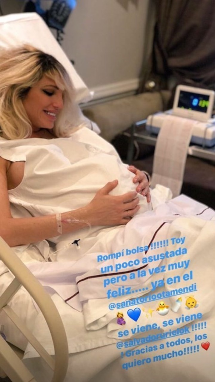 "Rompí bolsa!!!! Toy un poco asustada pero a la vez muy feliz…ya en el sanatorio Otamendi. Se viene, se viene @SalvadorUrielOk!!! Gracias a todos, los quiero mucho!!!", fueron las primeras palabras de Victoria, un rato antes del parto, ocurrido minutos antes de las 22.