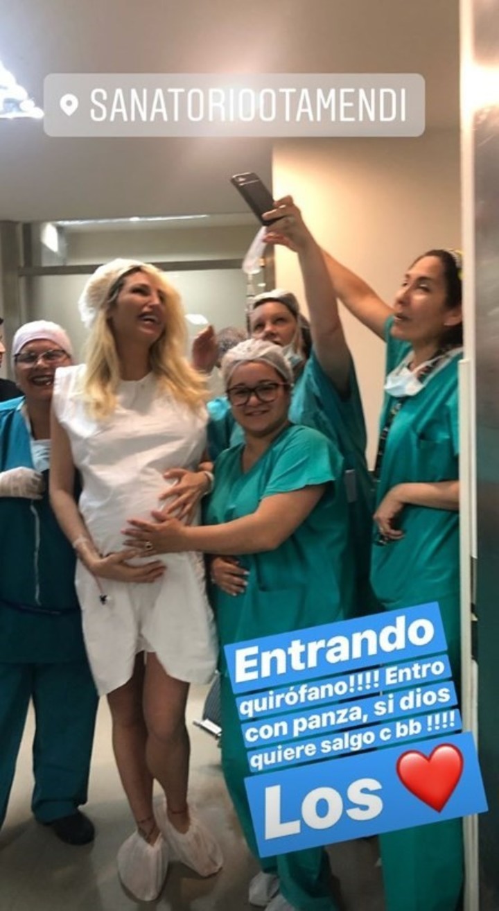 Vicky retrató la "fiesta" con una imagen con el personal del Otamendi, a pasos de la sala. "Entrando (al) quirófano!!!! Entro con panza, si dios quiere salgo con bb!!!!" Los amo", dijo la vedette.