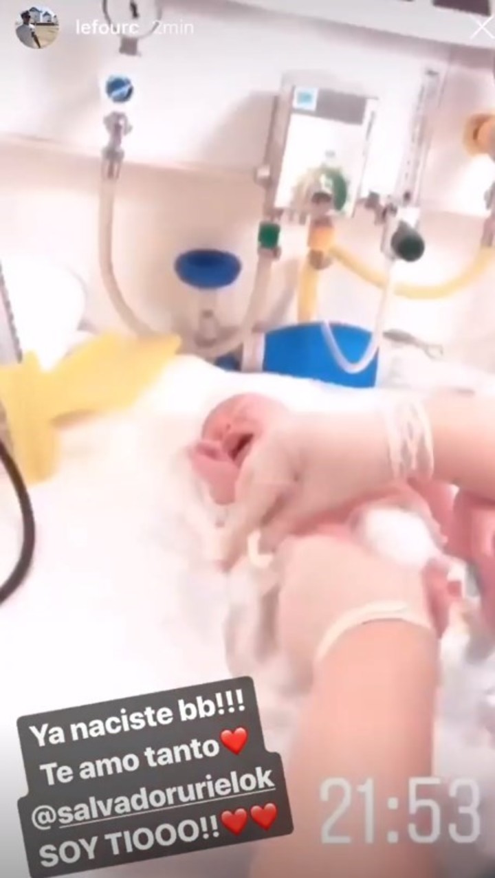 Y Nicolás se encargó de mostrar las primeras fotos del nene. "Ya naciste bb!!! Te amo tanto @SalvadorUrielOK. Soy tío!!!!", escribió el hermano, mientras le practicaban los primeros cuidados al bebé.
