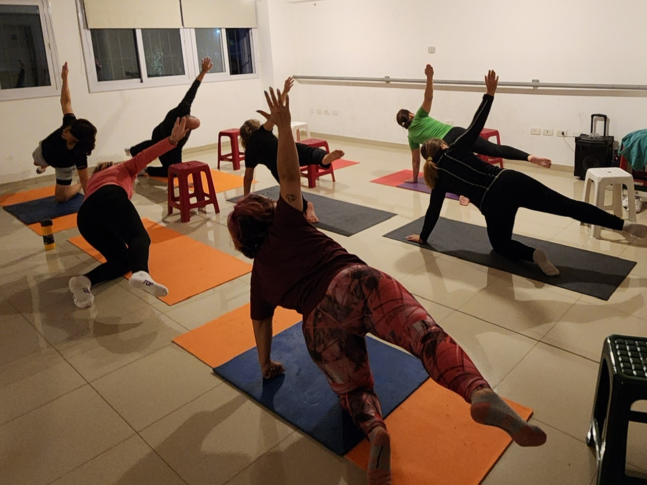 Es un conjunto de técnicas diferentes que se fueron dando en la India porque el yoga es una disciplina hindú, entonces toma un poco de todas las ramas y técnicas del yoga y los complementa en una sola disciplina. Así los profesores tenemos la libertad de ir trabajando distintas técnicas según el grupo. Por ejemplo, si hay un grupo de gente joven que se que tiene potencial no haré un yoga tranquilo, porque se que ese grupo pide más. Si trabajo la meditación, respiración, pero con ejercicios que complementen la fuerza con la elasticidad. Son clases donde hay mucho esfuerzo. Pero en realidad este yoga se adapta de acuerdo al grupo que se presenta. Es hasta personas de 70 años, siempre analizando el estado físico de cada una.
