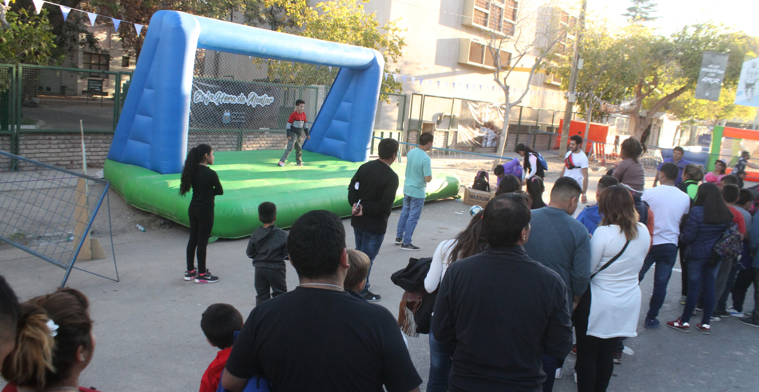 Además, de montaron canchas de fútbol inflables en la que se desarrollaron mini partidos. También se instaló un arco para ejecutar penales y un tiro al blanco para acertar el centro pateando un balón. Todos, según el desempeño de los participantes, daban premios.