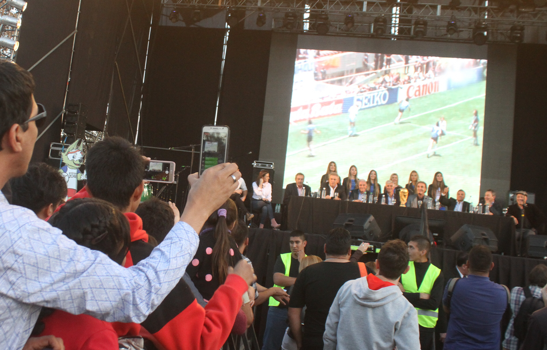 Luego, en el escenario mayor montado en el viejo estadio abierto, ocho ex campeones del Mundo en México "86 como Oscar Garré, Nery Pumpido, Jorge Burruchaga, Ricardo Giusti, Ruggeri, Carlos Enrique, Carlos Tapia y Julio Olarticoechea dieron una charla abierta en la que contaron sus vivencias y respondieron preguntas de la gente.