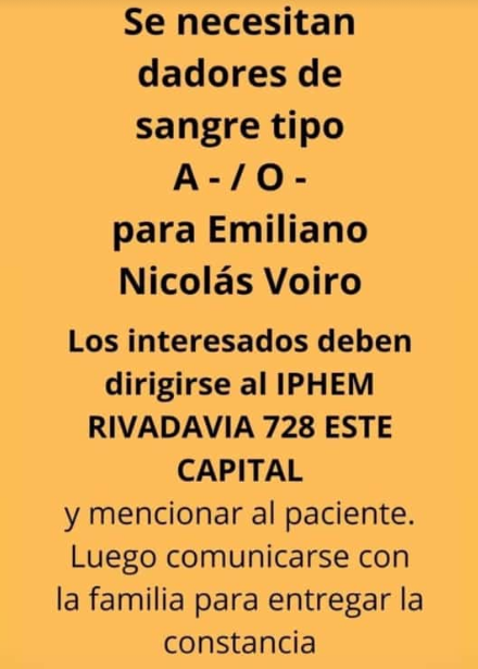 Tal como indican las imágenes que han compartido colegas, amigos y familiares, los interesados deben acercarse por IPHEM (Instituto Provincial De Hemoterapia), ubicado en Rivadavia 728 Este, en Capital.