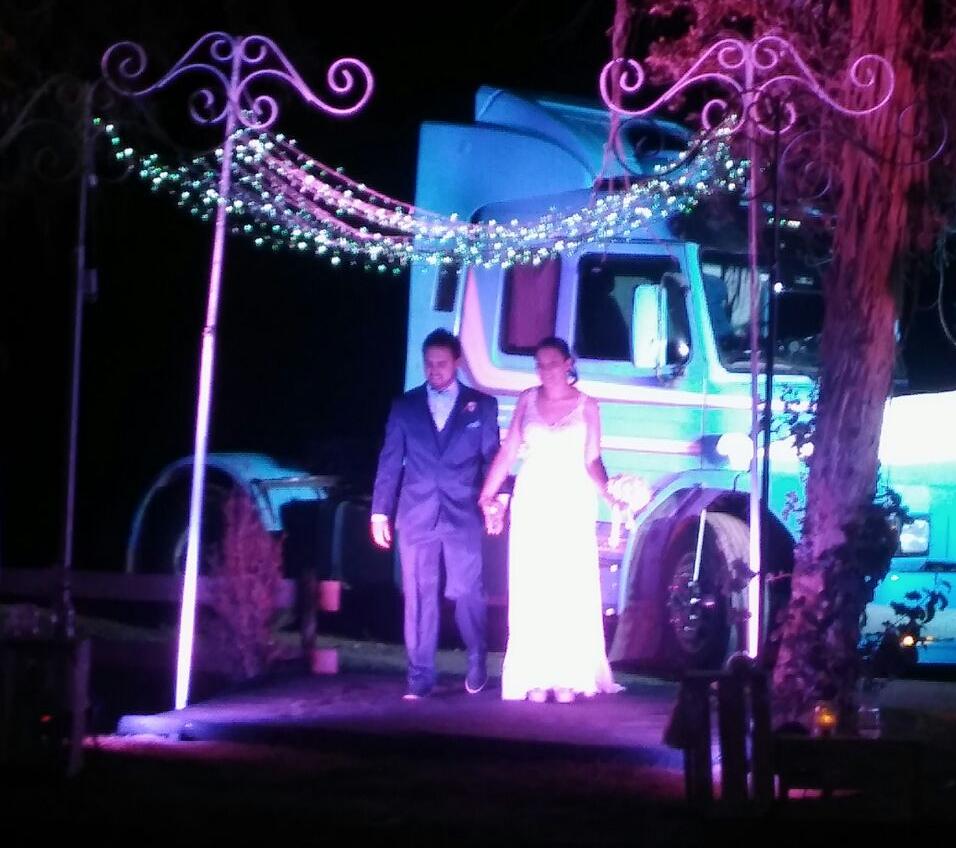 Renzo Hernández y Belén Pomarada se casaron después de 9 años de noviazgo. Él alquiló el enorme vehículo marca Scania 113 Top Line en Córdoba, desde donde debieron traerlo.