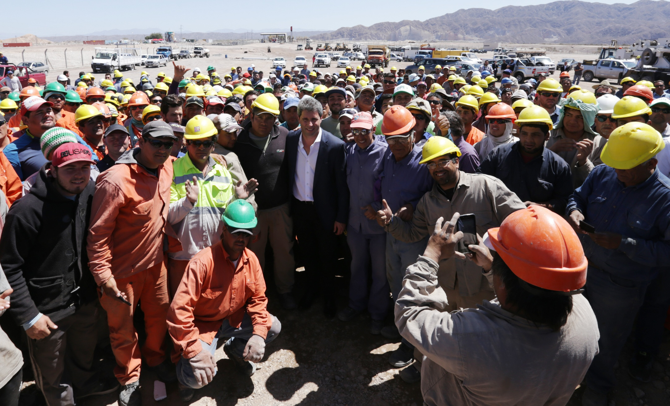 Satisfechos. La máxima autoridad provincial compartió momentos de alegría con los empleados de las distintas empresas que aunaron esfuerzos para concluir el autódromo.