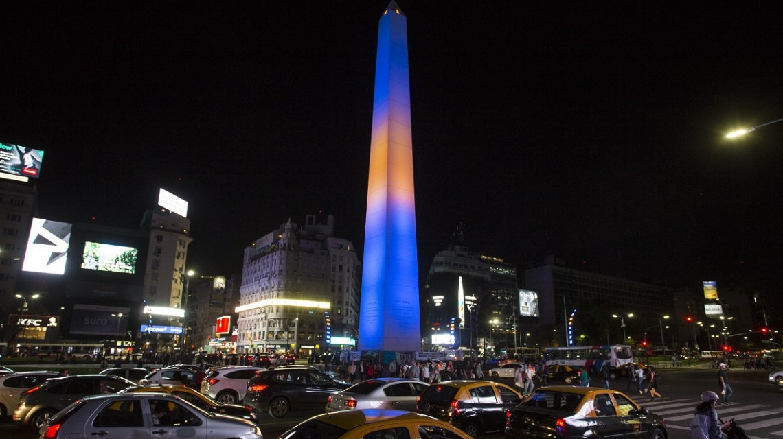 Por esta razón, el Gobierno de la Capital Federal autorizó a iluminar durante una hora de azul y amarillo el emblemático monumento ubicado sobre la avenida 9 de Julio y Corrientes.