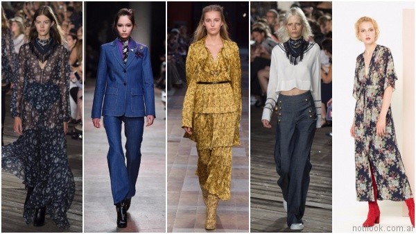 4 – Años 70: Una década que sigue más vigente que nunca, los maxivestidos de manga larga, con estampados coloridos y silvestres, mangas acampanadas y volados en el ruedo. Pantalones de pata ancha, otros de corte sastrero y en colores neutros.