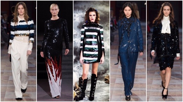 – Lentejuelas: mini vestidos, chaquetas y pantalones al tobillo que se cubren de estridentes lentejuelas