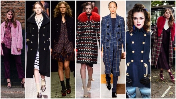 Tapados: Una opción sobria el estilo marinero, abrigos azules marinos, con rayas, ribetes y botones dorados y largo hasta el suelo. También estarán muy presentes los abrigos de cuadros que ofrecen algo de color y estampados para los fríos y grises días del invierno. Abrigos de pelo llamativos de colores fuertes o con estampas estridentes.