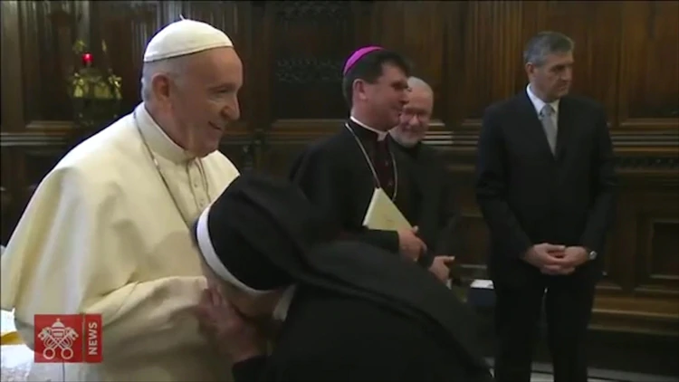 En el video se observa cómo el Papa saluda a docenas de personas a las que no pone resistencia para que le besen el anillo, pero, después, empieza a retirar la mano a quienes intentan hacerlo.