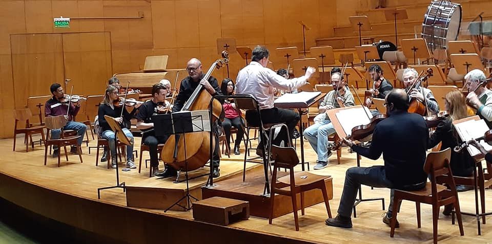 La Sinfónica en un ensayo para el concierto de hoy (izq. arriba).