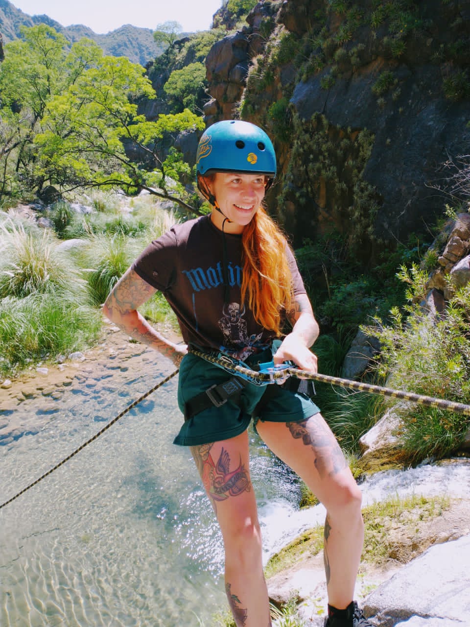 Quien contrata esta propuesta, a diferencia de la caminata común, recorre cinco cascadas. Y tiene un plus más, hace rappel, esa actividad para descender y ascender por superficies verticales, en este caso paralelas a las cascadas, ayudándose por un sistema de cuerdas.