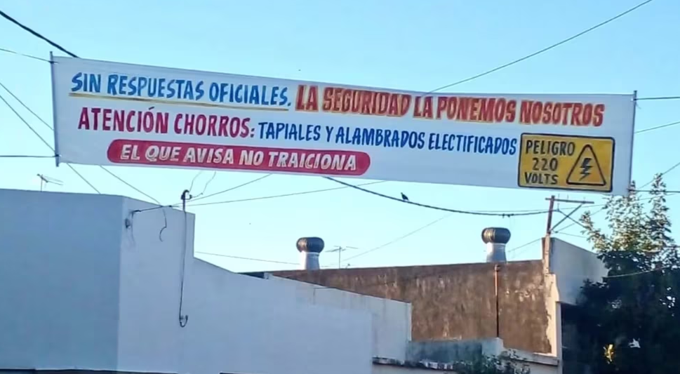 “Sin respuestas oficiales. La seguridad la ponemos nosotros. Atención chorros: tapiales y alambrados electrificados. El que avisa no traiciona”, escribieron en uno de los carteles.