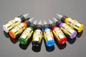 La mayoría de las tintas de los tatuajes contienen pigmentos orgánicos, junto con elementos conservantes y contaminantes como níquel, cromo, manganeso y cobalto. El ingrediente más común es el carbón vegetal, que tiene color negro. El segundo más utilizado es el dióxido de titanio (Ti02), utilizado también en aditivos alimentarios, que aporta el color blanco que se usa en la creación de sombras del tatuaje, combinándolo con otros colorantes.