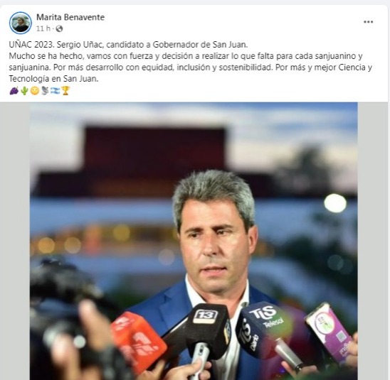 Otro que dejó su apoyo manifiesto en las redes sociales, tal como lo viene haciendo públicamente, es el vicegobernador Roberto Gattoni. “San Juan necesita de su capacidad, liderazgo, poder de decisión y compromiso para seguir avanzando en pos de mejor calidad de vida para los sanjuaninos”, escribió.