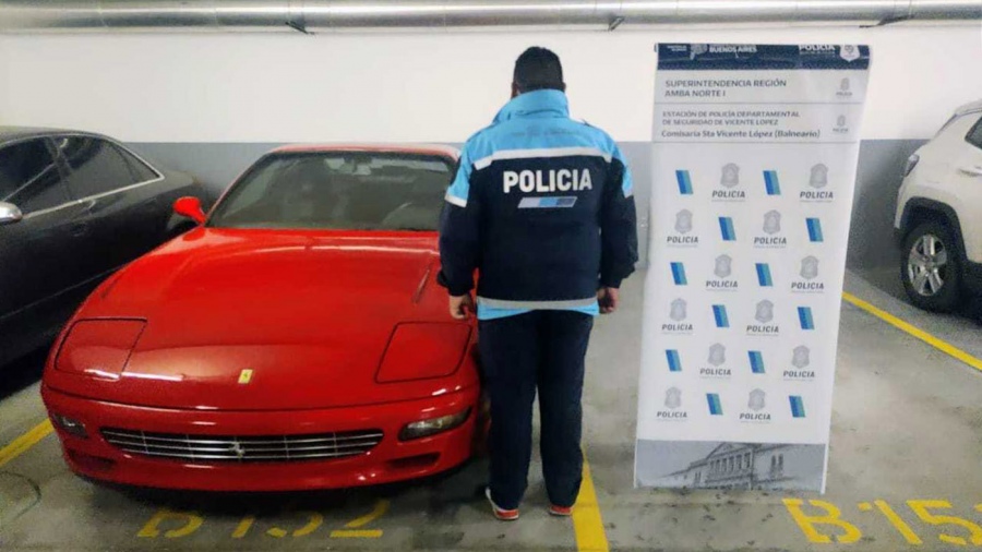 En la cochera del edificio allanado, la Policía también secuestró un auto de lujo, una Ferrari 456 color roja, y dentro de un placar, los efectivos también hallaron un celular Samsung Galaxy S8, sin tarjeta SIM e IMEI no visible, todo incautado para su debido análisis, al igual que una notebook y un router.