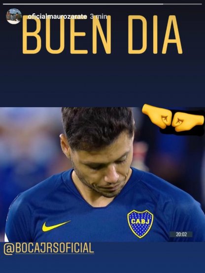 Y justamente una imagen de ese momento eligió compartir esta mañana el delantero en sus redes sociales. Pasadas las 8 de la mañana del lunes, Zárate compartió en su historia de Instagram una captura de la transmisión del instante donde se escuchaba el himno y el delantero parece estar mirándose el escudo de Boca. "Buen día", puso el ex Vélez, acompañado de dos puños chocándose.