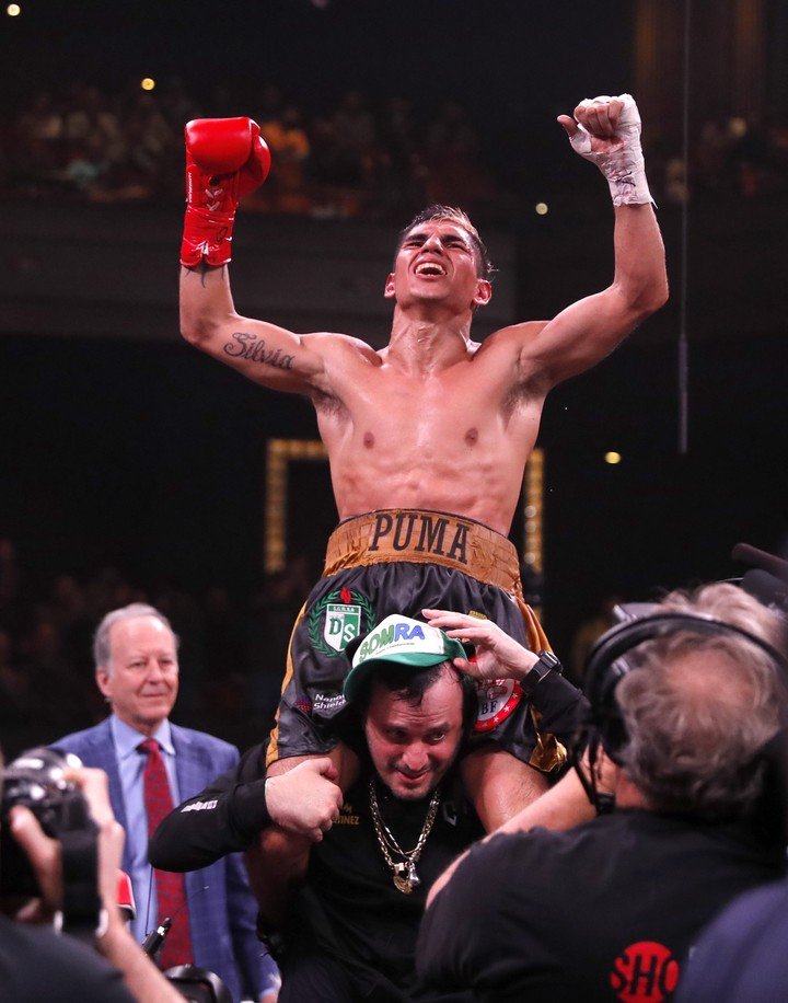Escoltado en el ring por su promotor, el excampeón mundial Marcos "Chino" Maidana, el "Puma" Martínez se mostró quebrado por la emoción de su logro y recordó especialmente a su padre, quien antes de morir le había asegurado que llegaría el momento de la consagración.