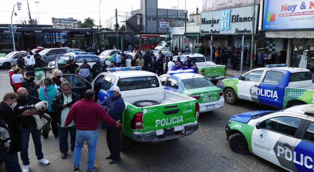 Los patrulleros rodearon el perímetro e hicieron sonar sus sirenas para expresar su malestar ante la falta de precisión sobre la suba salarial que anunció el gobierno de Axel Kicillof.