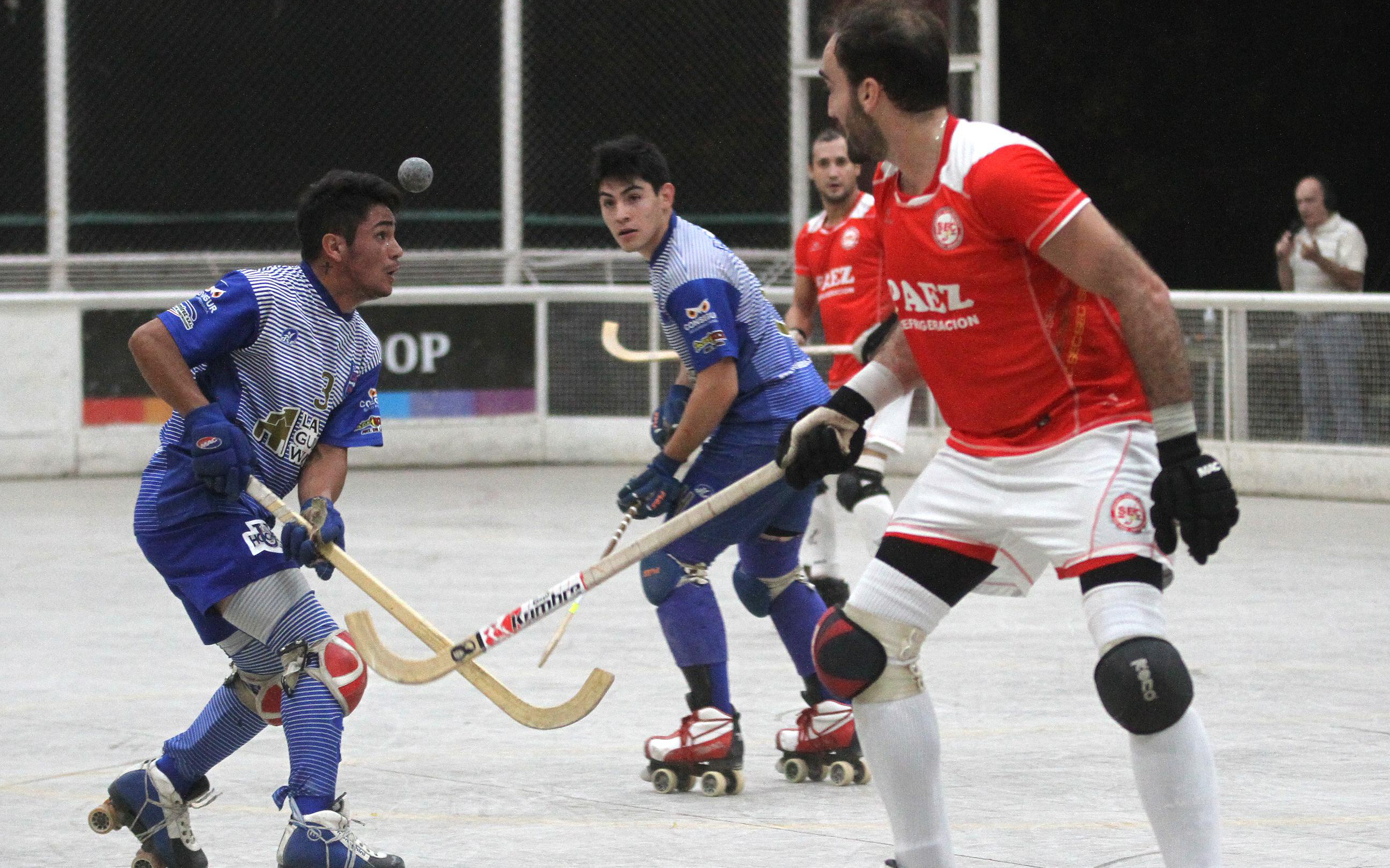 Contundente. Emiliano Chiconi, de Olimpia, lucha por la bocha ante un rival. El equipo Turco no se apiadó de Sarmiento de Albardón y lo goleó 12-3.