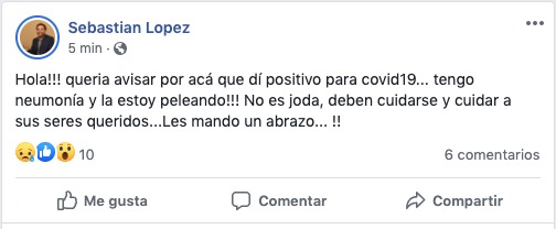 "Di positivo para covid-19, tengo neumonía y la estoy peleando", escribió en su posteo.