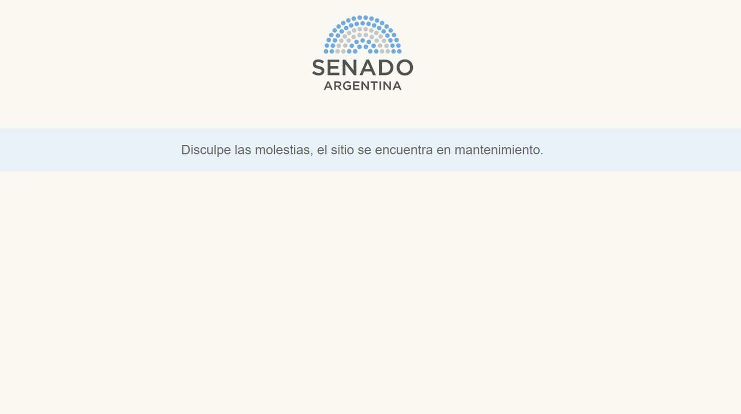 Por estas horas, la página oficial de la Cámara Alta se encuentra fuera de servicio, con un cartel que indica: “Disculpe las molestias, el sitio se encuentra en mantenimiento”.