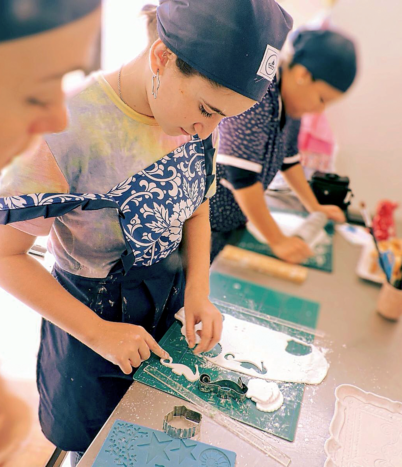 "Proponemos vivir la experiencia de hacer la propia torta, partiendo del genoise (un tipo de bizcocho italiano), los rellenos que les gustan, armándola, modelando las figuras o decorando con el diseño en fondant que elija cada uno. Para eso, se hace un proyecto, se charla, se dibuja, se diseña, se estudian las técnicas de cocina y por supuesto, se pone mano a la obra’, explica la chef que aclara que son dos encuentros de aproximadamente 5 horas cada uno, dependiendo de la complejidad del diseño de la torta de dos pisos que se prepara. Un día se prepara el bizcochuelo y se deja listo con los rellenos. Y al día siguiente se decora. Por eso es fundamental reservar un turno con al menos dos o tres semanas de anticipación. La preparación se hace dos días antes del festejo del cumpleaños, caiga en el momento de la semana que sea.