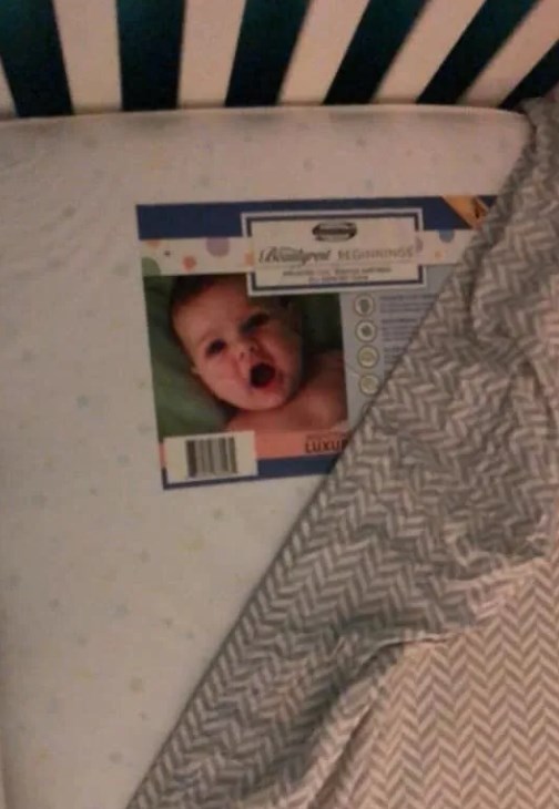 El "fantasma" resultó ser una pegatina que estaba en el colchón. Como su marido se había olvidado de poner el protector del colchón antes de cambiar las sábanas, la imagen se veía junto a su pequeño hijo. La mujer compartió la historia en su cuenta de Facebook y se volvió viral.