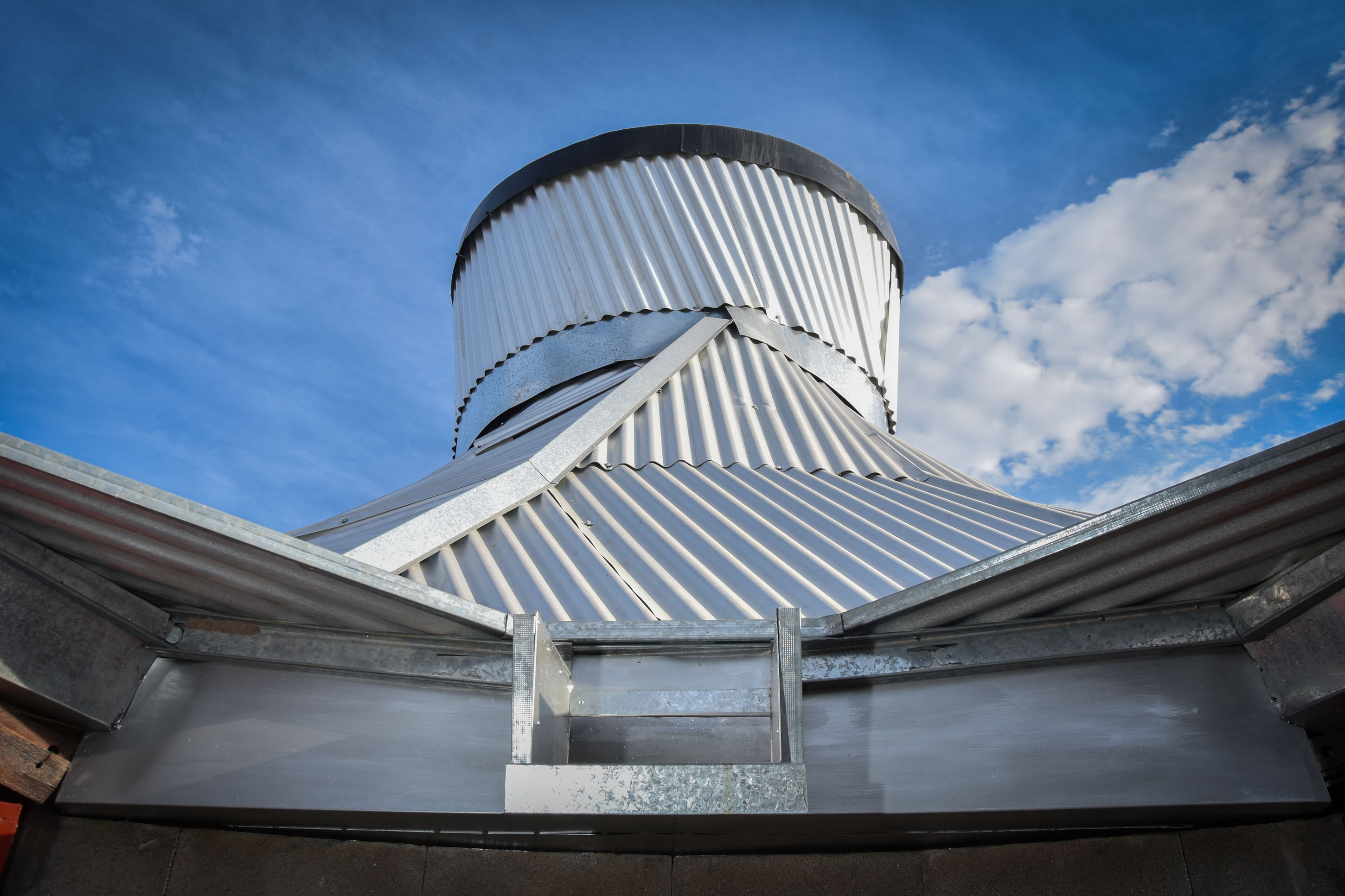 Otro valor agregado es que este original óculo se abre o cierra con una manivela según las necesidades. "Si bien es una cubierta más compleja que un techo tradicional aporta menos uso energético porque funciona más pasivamente al calor. Por eso digo que es un dispositivo aerodinámico ya que así funciona. A esto se suman los parasoles que son chapas ubicadas uniendo a los aleros que completan esa función", agrega.
