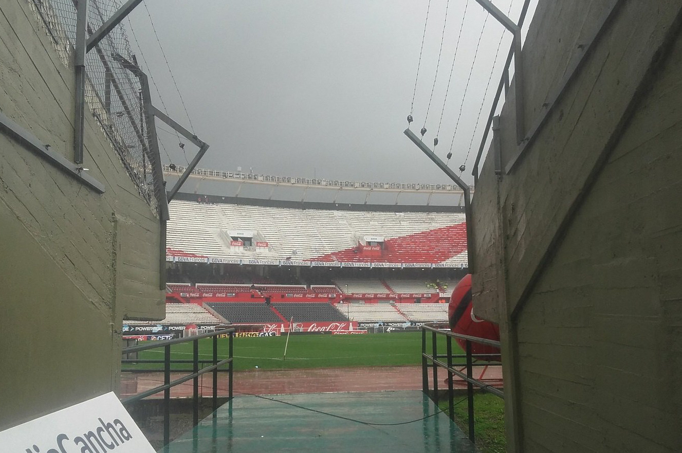 Inundado. El campo de juego del Monumental sufrió las consecuencias del temporal.