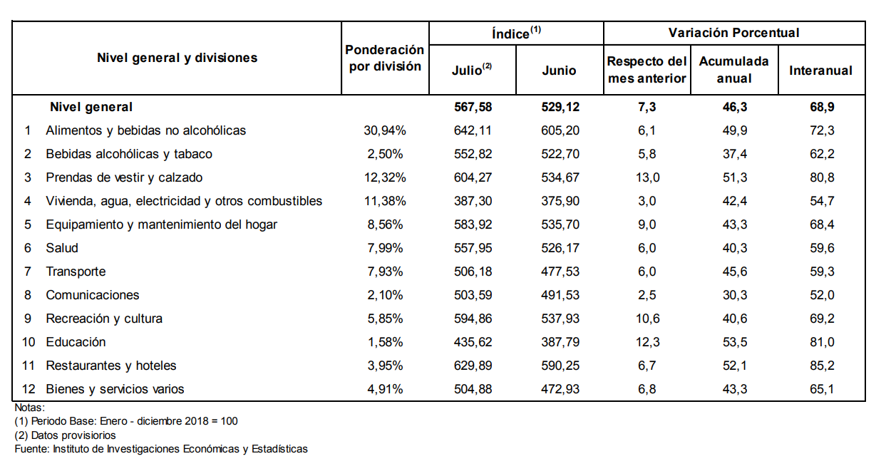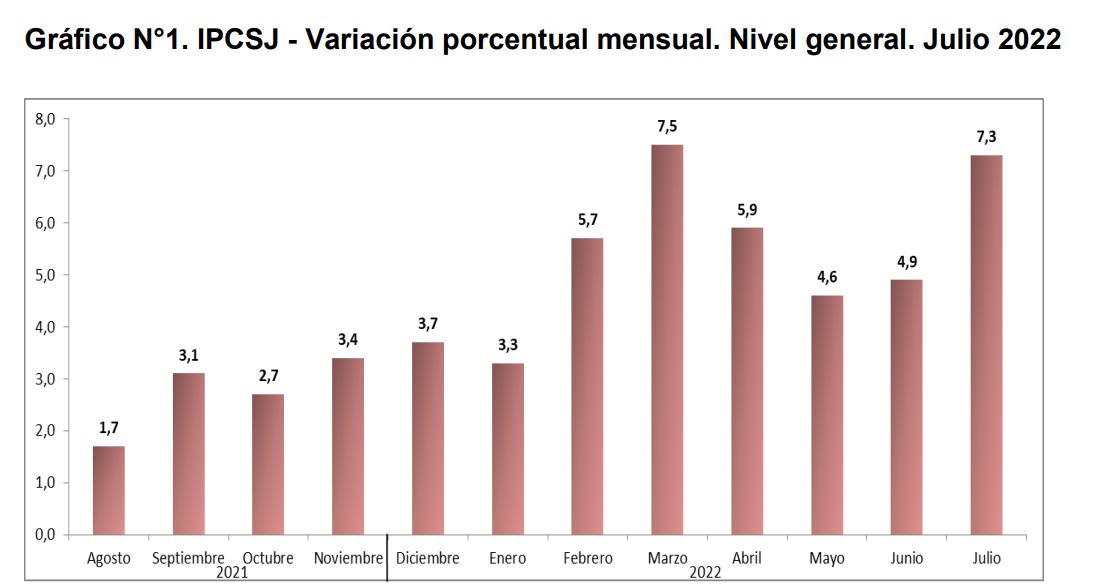 El Ministerio de Hacienda de la provincia, a través del Instituto de Investigaciones Económicas y Estadísticas, reveló este jueves el Indice de Precios al Consumidor (IPC) y, como se esperaba, sintió el impacto de la inestabilidad de julio. En rigor, la inflación local se ubicó en el 7,3%, acumula en el año 46,3% y en los últimos 12 meses suma 68,9%.
