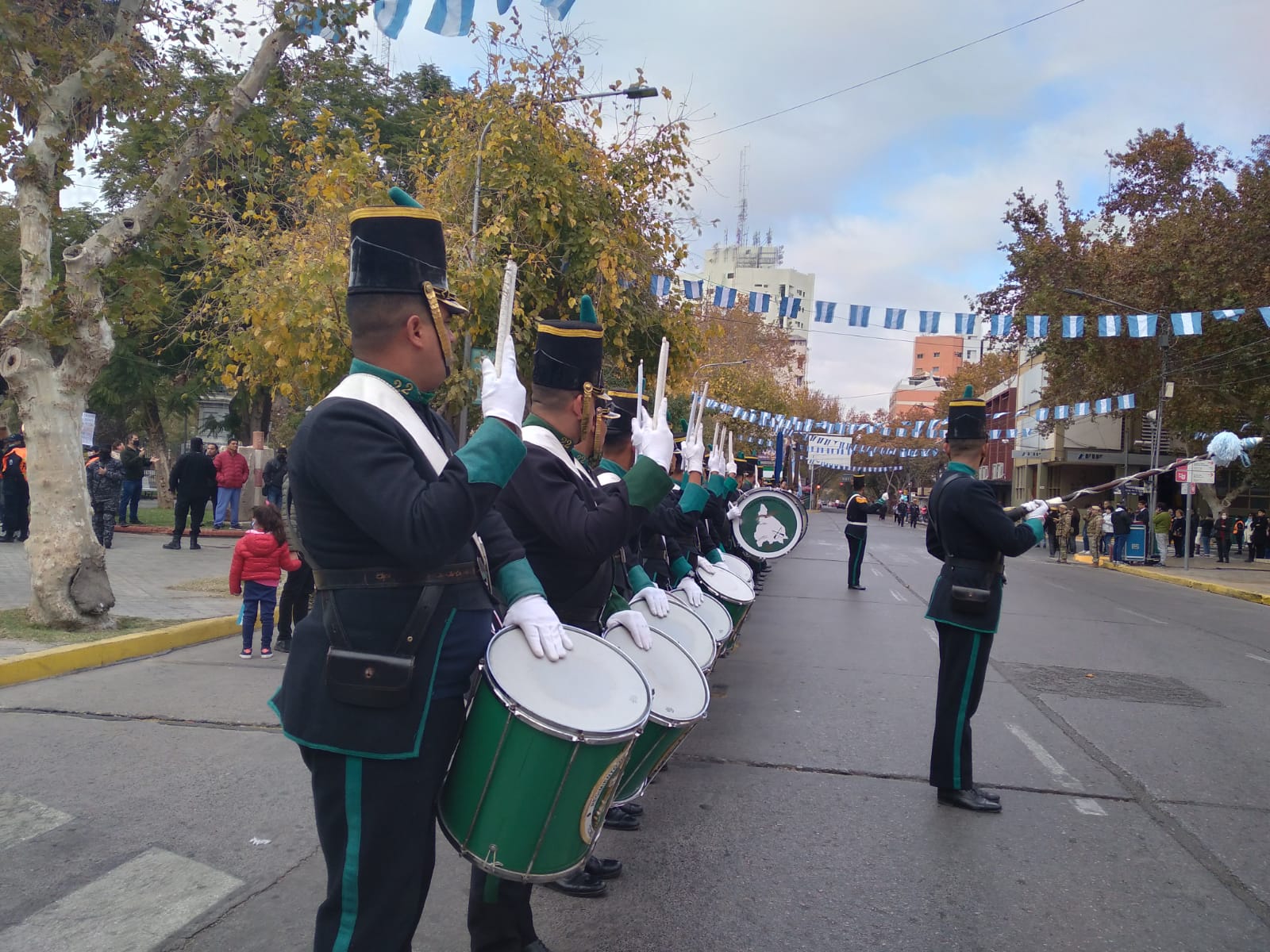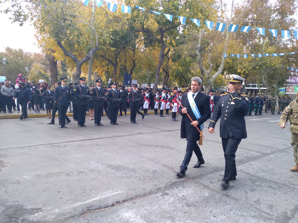 Pese a que la jornada se presentó fría, varios sanjuaninos llegaron a la Plaza 25 para no perderse a la Banda de Música de la Policía de San Juan como también a la formación de Patricios.