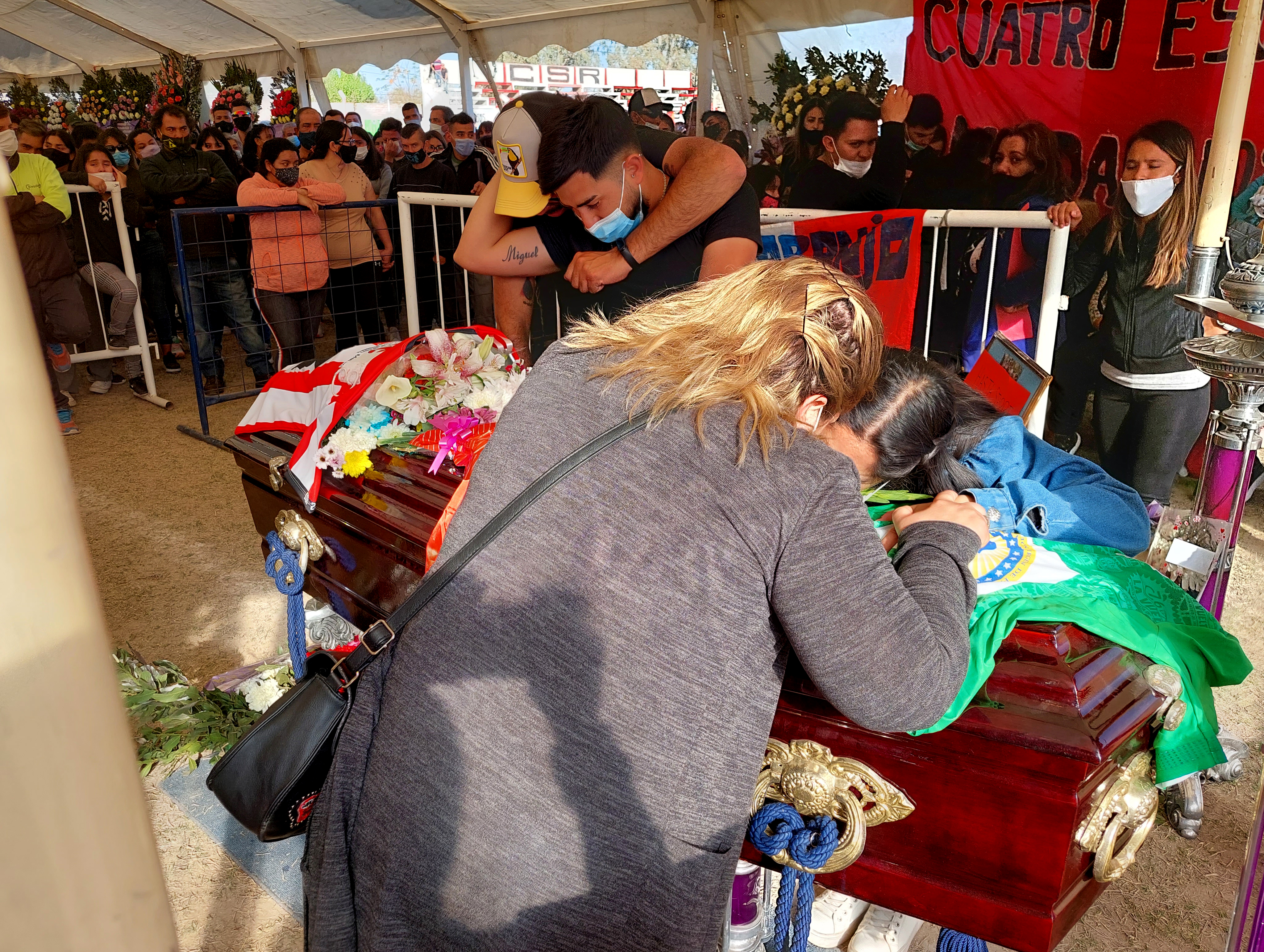 Pero la tristeza no quedó ahí, sino que se trasladó hasta el cementerio San Miguel de Rawson. Primero, al salir de Rivadavia, Paulo Sotelo y su trompeta acompañaron el féretro mientras el llanto y la emoción fueron en aumento. Y después, durante todo el recorrido que incluyó el paso por su casa de toda la vida, otros miles más de fanáticos aplaudieron a un costado de la calle siguiendo el ritmo del pelotón multicolor que “custodiaba” al ídolo.