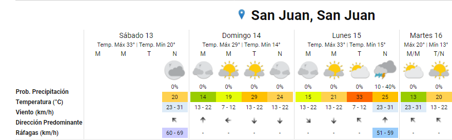 Con ráfagas superiores a los 45 kilómetros por hora desde las 13 de este sábado, el viento del cuadrante Sur continuará soplando durante la noche y recién desde la madrugada del domingo irá descendiendo paulatinamente su velocidad, para que ingresen desde la mañana nuevos frentes de aire para que pase a predominar del cudrante Norte a partir del mediodía. Así, la temperatura máxima prevista alcanzará los 29 grados.