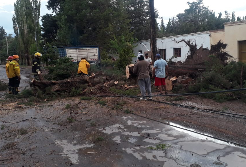 Viento. En Barreal, dos árboles en la vía pública fueron derribados por un remolino, que a su vez cortaron los cables de la distribución eléctrica.