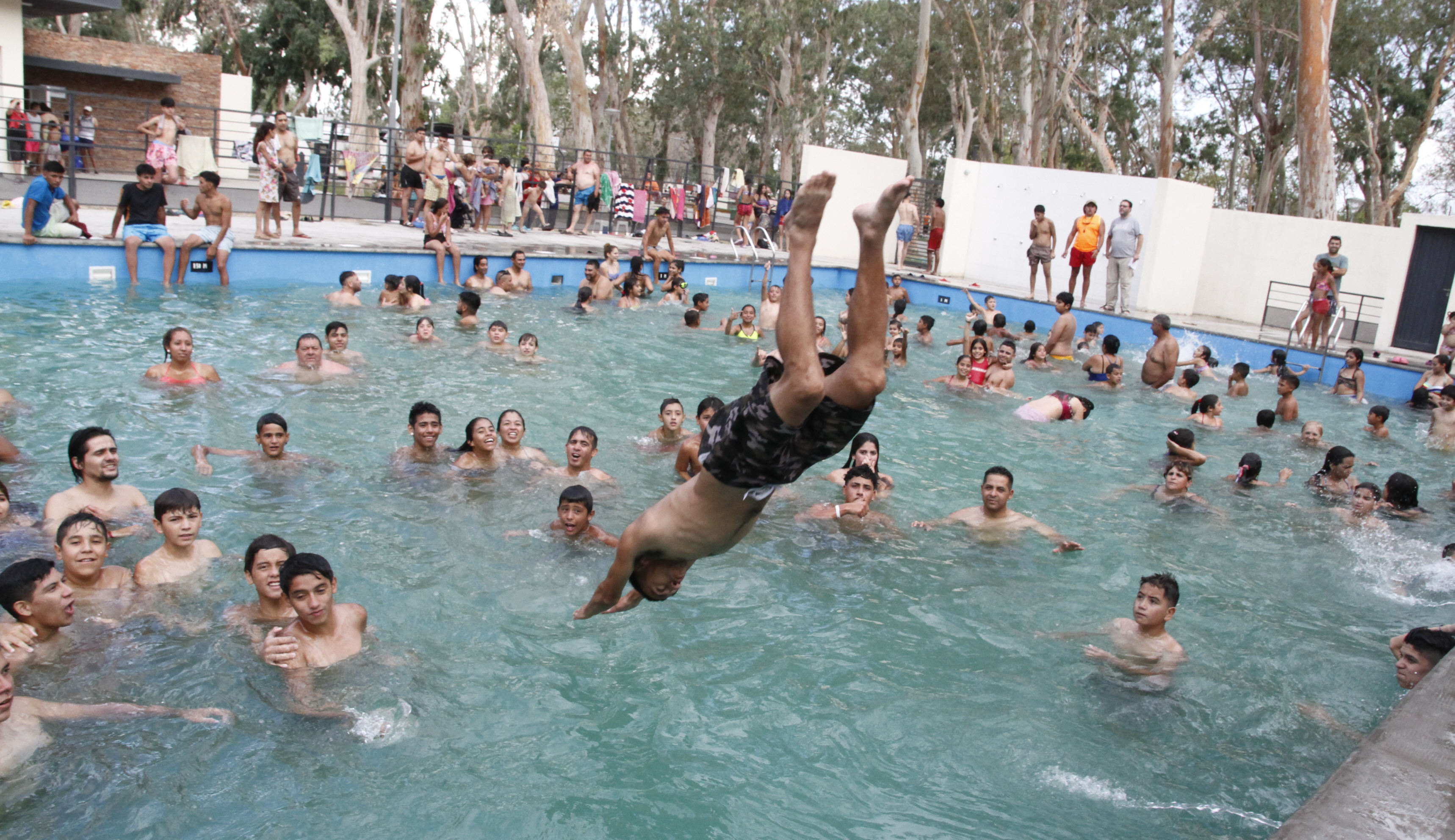 Todo diversión. En el flamante camping de la Villa Observatorio, Chimbas, el día fue de total diversión y no hubo un fuerte impacto de tormentas, por lo que la pileta estuvo funcionando hasta su cierre, las 21.