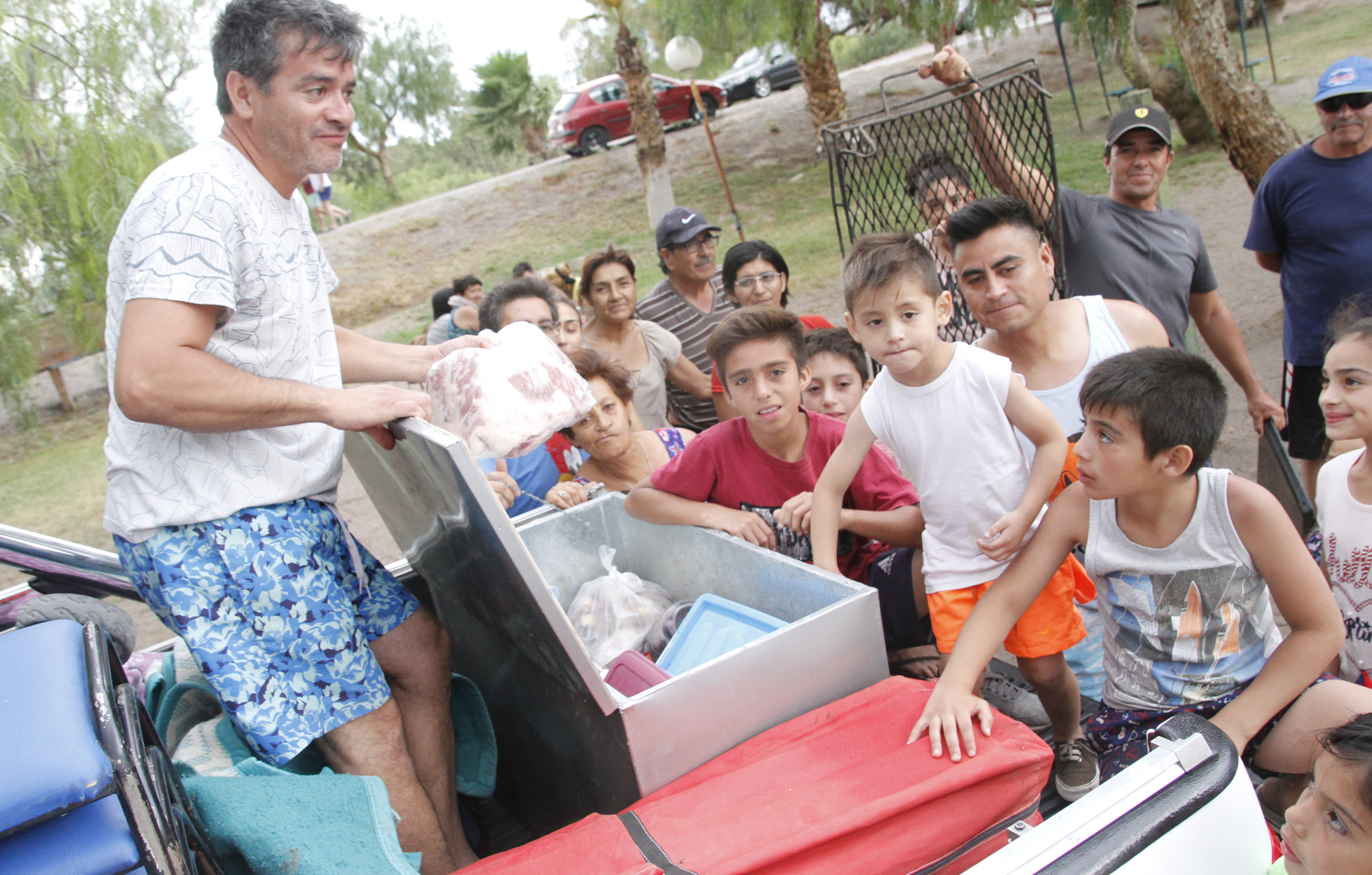 Estoicos. Las familias Chavez, Sosa y Leguiza, de Angaco, fueron al Dique de Ullum. Esperaron que pase la tormenta y empezarían a asar una punta de espalda.