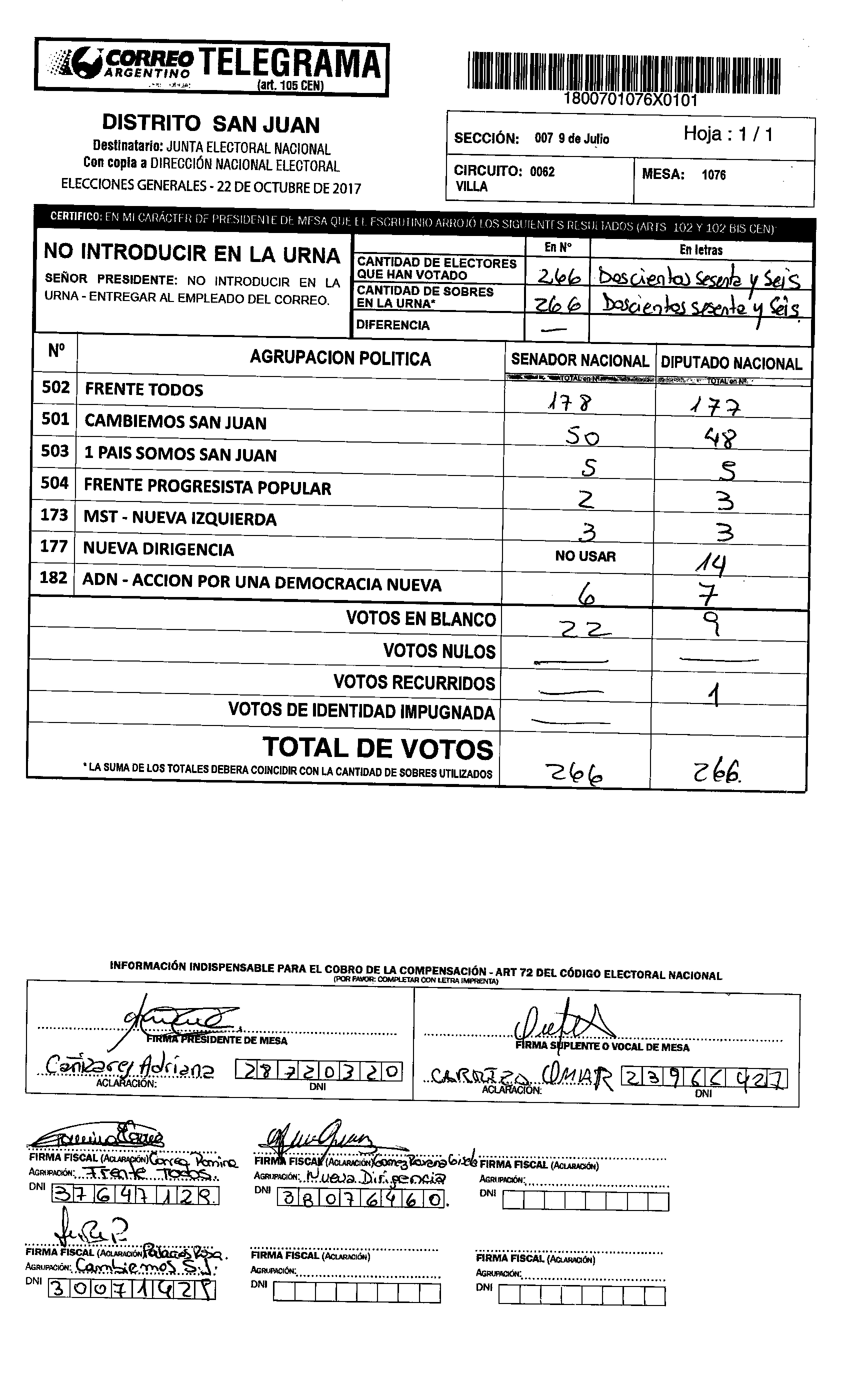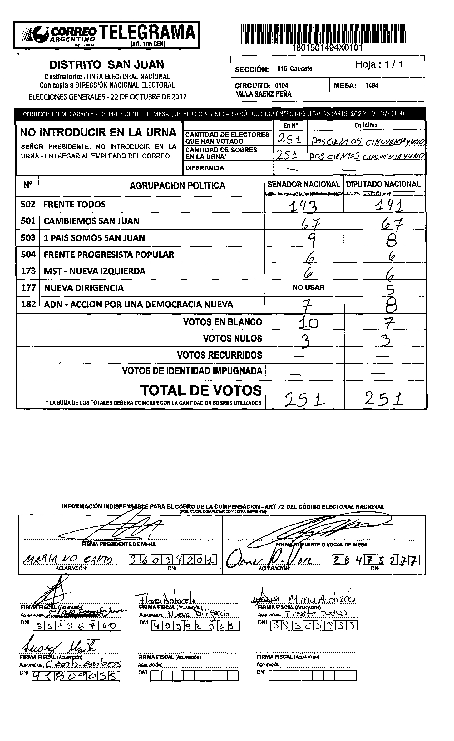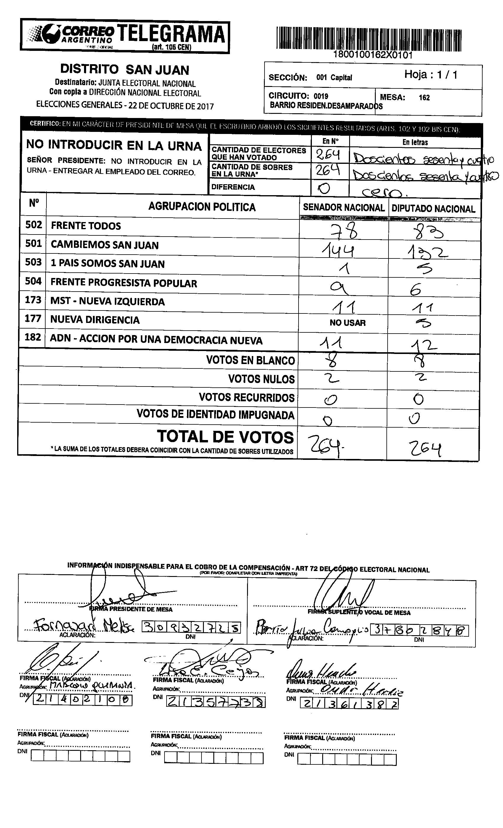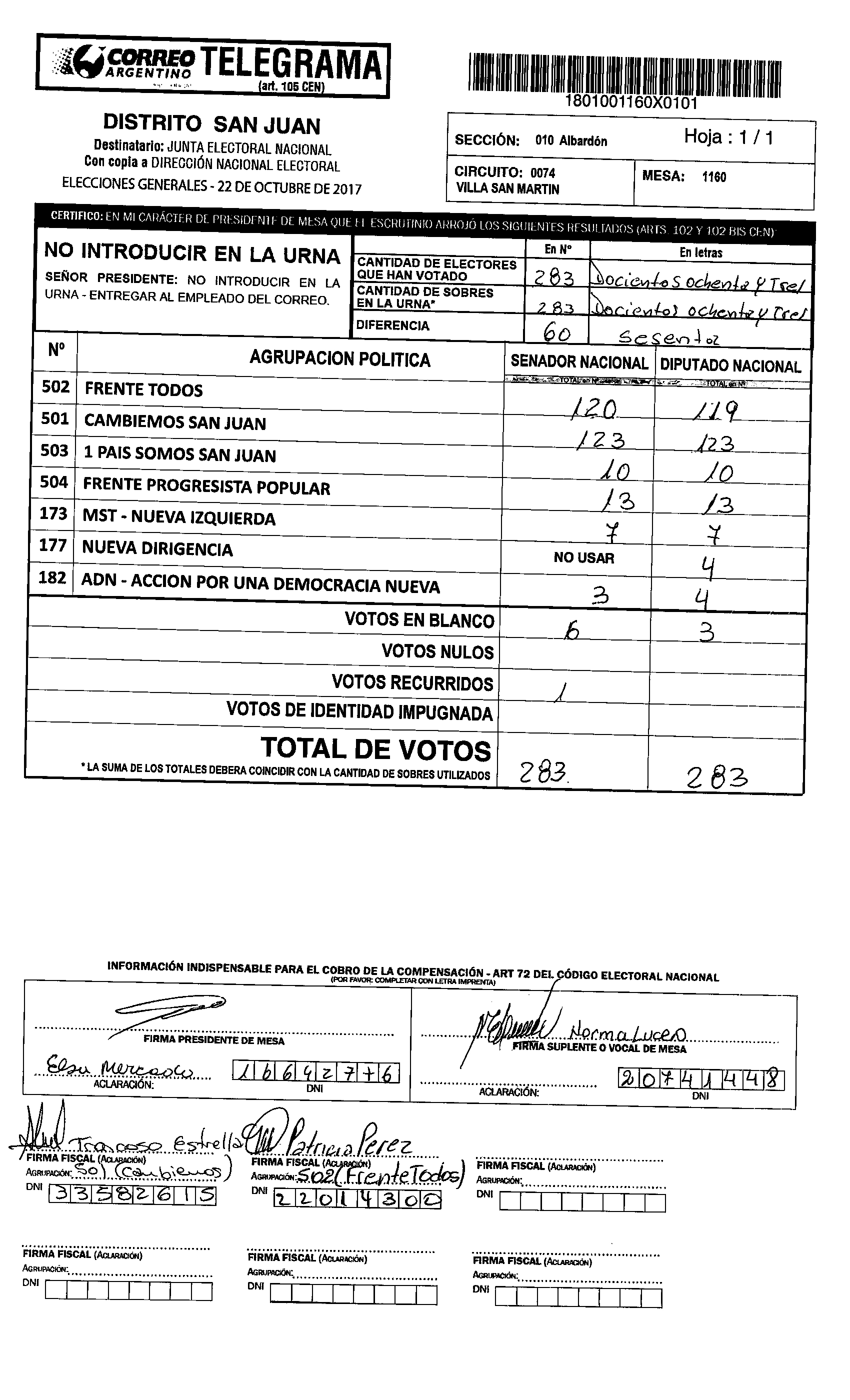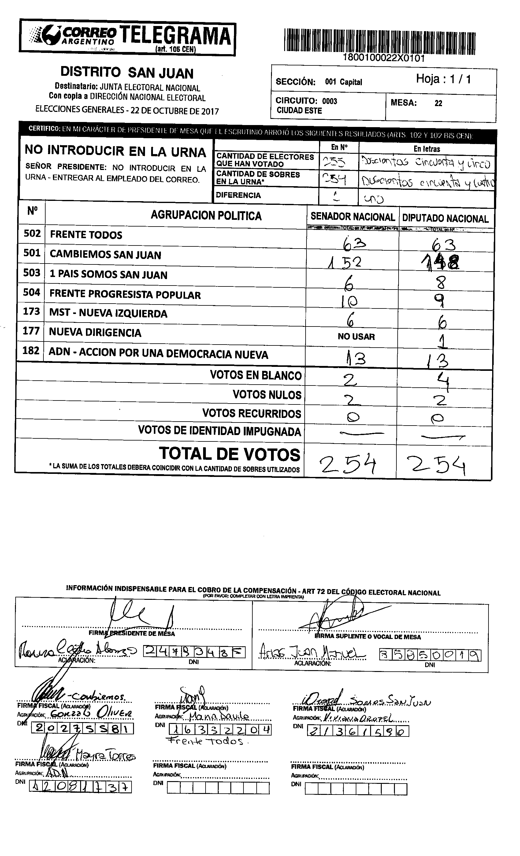 Cristina López de Abraca, electa senadora nacional por San Juan por el Frente Todos, votó en la mesa 1160 de la Escuela Camilo Rojo de Albardón. En esa mesa GANÓ CAMBIEMOS.