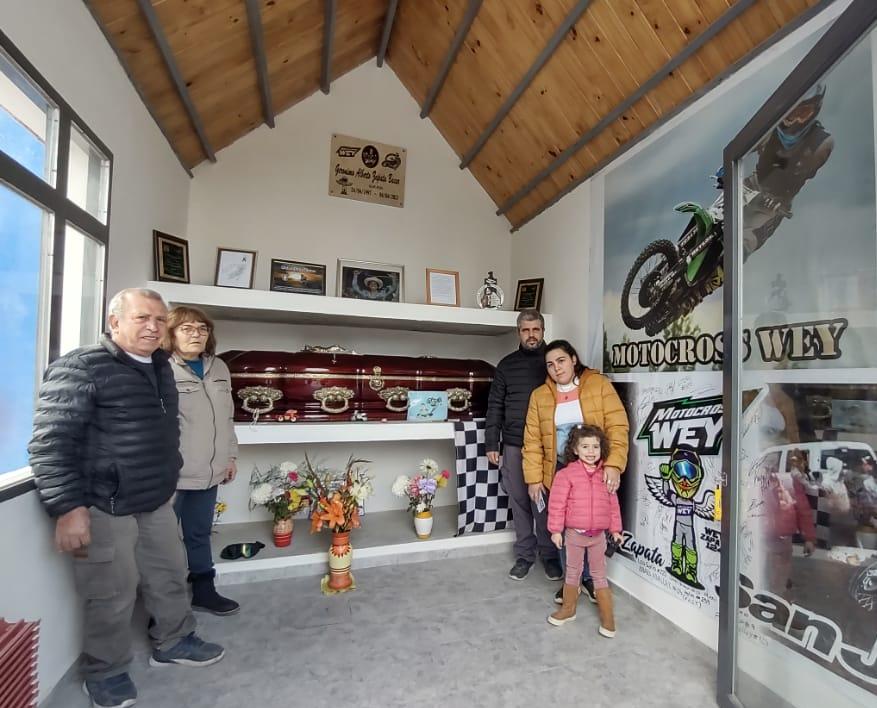 El nombre de Alberto Zapata -para todos el "Wey"- será difícil de olvidar con el paso de los años. El piloto de motocross fallecido hace 14 meses dejó una huella difícil de borrar: no solo en el deporte sanjuanino, sino en todos quienes conocieron de su historia de vida. Por eso y con el fin de que su nombre siga vigente, su familia inauguró una Capilla donde ahora descansan los restos del reconocido piloto, ubicada dentro del Cementerio San Miguel de Rawson. Además por iniciativa de sus amigos, pintaron un enorme mural con las imagenes más significativas en la vida del piloto.