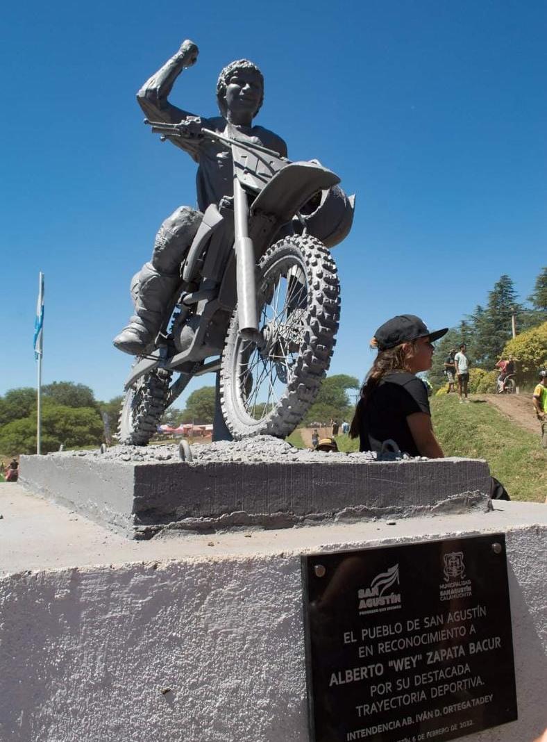 La familia viajó el pasado 7 de febrero para presenciar la inauguración de la escultura de Zapata en la plaza principal de San Agustín, Córdoba, ciudad donde falleció el piloto sanjuanino el 4 de abril del 2021 cuando sufrió una caída mientras competía. La escultura, está hecha en tamaño real del piloto que fue realizada por el artista Pablo Díaz, un escultor de Alta Gracia, amante del motocross, que quiso homenajear al sanjuanino porque sintió que la historia del Wey lo “toca muy de cerca”. Ese día estuvieron los médicos que atendieron al jóven sanjuanino el día de la tragedia, la gente de la organización de la Copa San Agustín e impulsores de este homenaje; Mario Medina por la Federación Cordobesa y Leonel Banner como responsable del Campeonato Cordobés de Motocross.