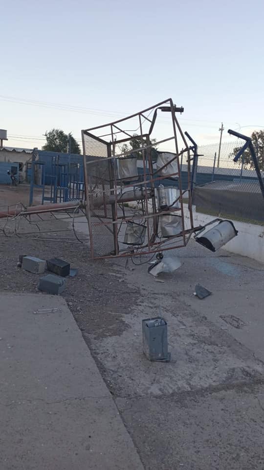 *En las instalaciones del Club Atlético Unión de Rawson informaron que el viento derribó una de las torres de luz, rompió todos los reflectores y la caída dañó la tela olímpica que está detrás del banco de suplentes.