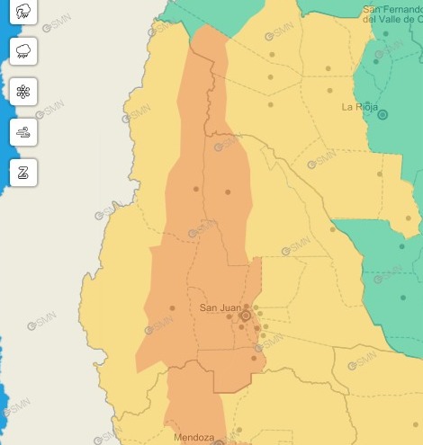 "El área podrá ser afectada por viento Zonda fuerte o severo, con una intensidad de vientos oscilando entre 50 y 75 km/h y ráfagas superando localmente los 90 km/h. Este fenómeno puede provocar reducción significativa de la visibilidad, un repentino aumento de temperaturas y condiciones de muy baja humedad relativa", indica el informe.