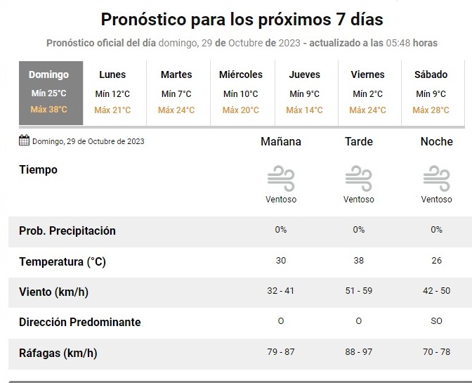 El viento Zonda continuará durante toda la jornada del domingo, lo cierto es que de cumplirse el pronóstico del Servicio Meteorológico Nacional las ráfagas por la tarde podrían alcanzar los 97 k/h.