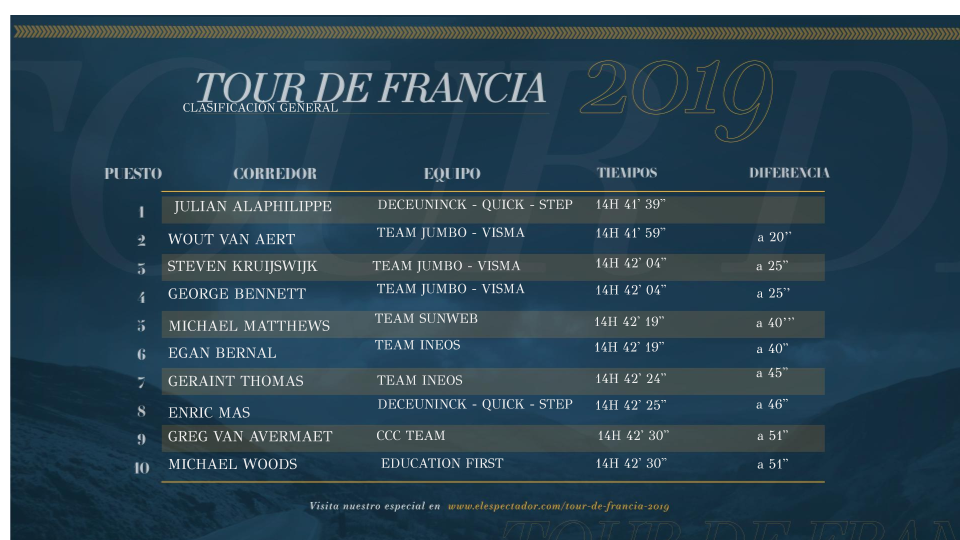 El francés Lilian Calmejane (Total Direct Energie) intentó una escapada que no prosperó. En el embalaje final se impuso el italiano Elia Viviani (Deceuninck-Quick Step). Alaphilippe conservó la camiseta amarilla de líder del Tour de Francia y buscará retenerla este miércoles en la quinta etapa, a celebrarse en 175,5 kilómetros, entre Saint-Dié-des-Vosges y Colmar.