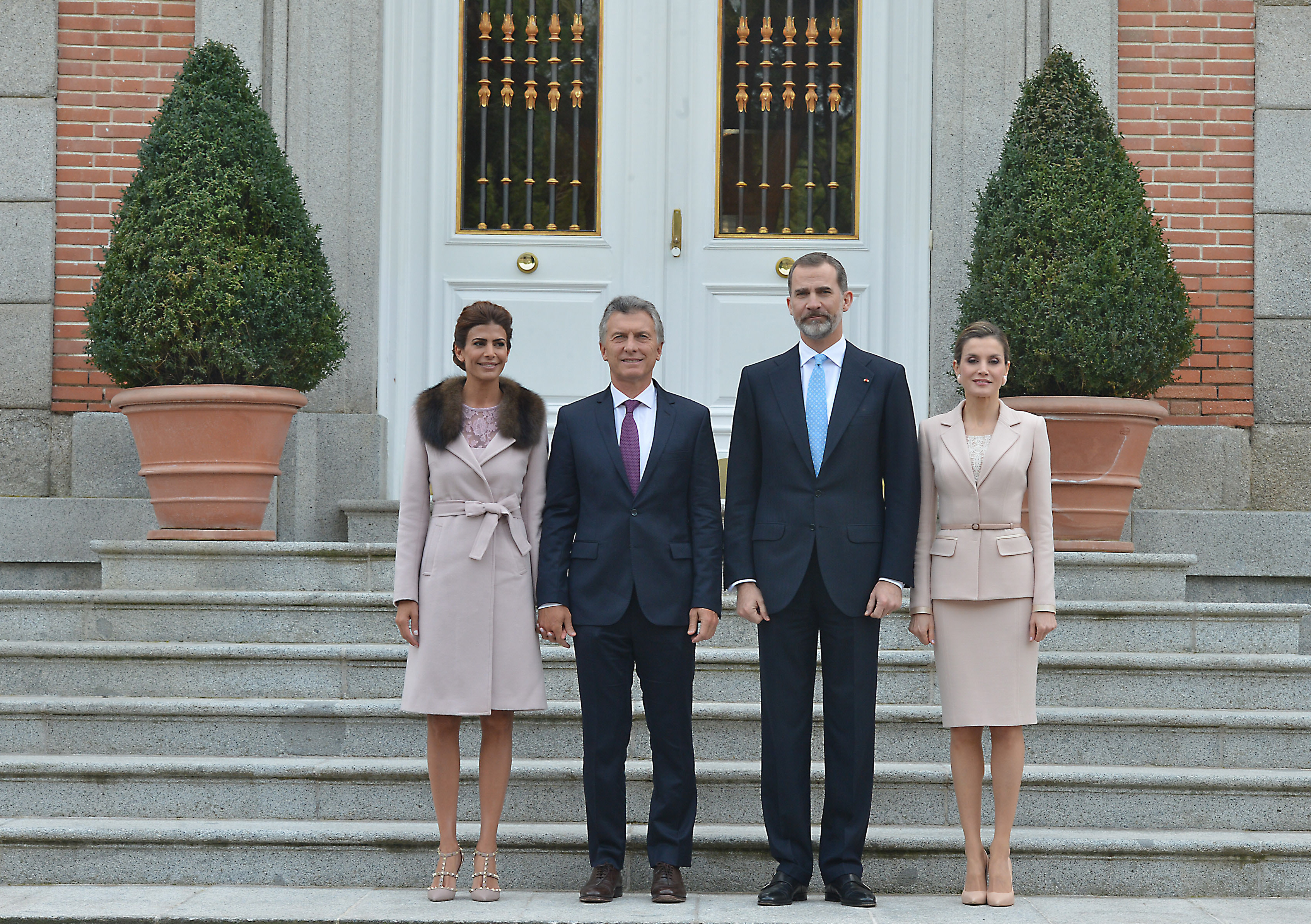 Antes de su discurso ante los parlamentarios españoles, Macri fue recibido por los reyes de España, Felipe y Letizia, en una ceremonia oficial realizada en la Plaza de la Armería, del Palacio Real de Madrid. El primer mandatario estuvo acompañado por su esposa, Juliana Awada.