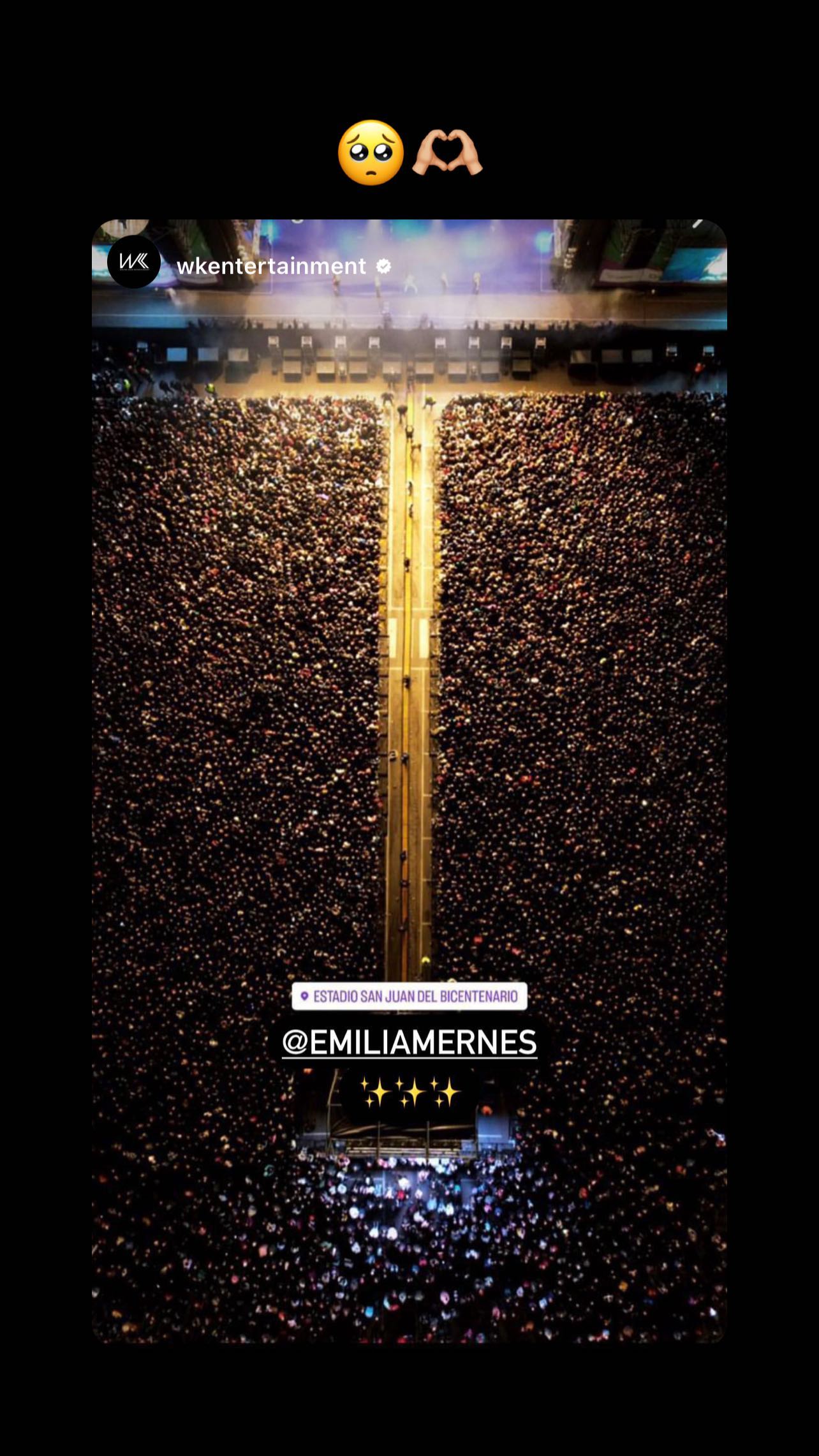 "Gracias San Juan por esta noche increíble. Los amo", escribió junto a un video en el que se observan las más de 40 mil personas que disfrutaron del domingo. "Los amo con mi alma", agregó en otra foto en la que se ven los carteles de los más cercanos al escenario.