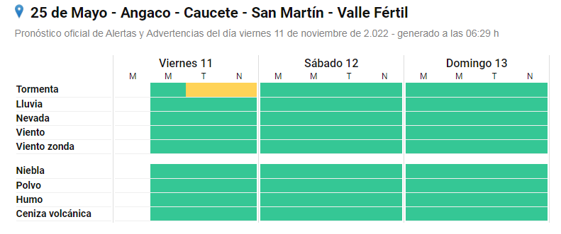 Según el informe emitido, el fenómeno podría registrarse con mayor intensidad en 25 de Mayo, Angaco, Caucete, San Martín y Valle Fértil.